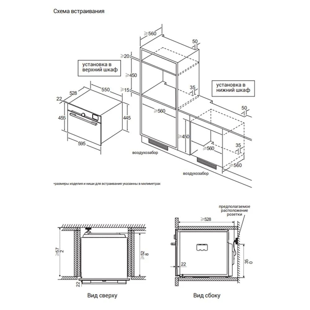 Габариты для встраивания (ШхГхВ): 56 х 56 х 45 см