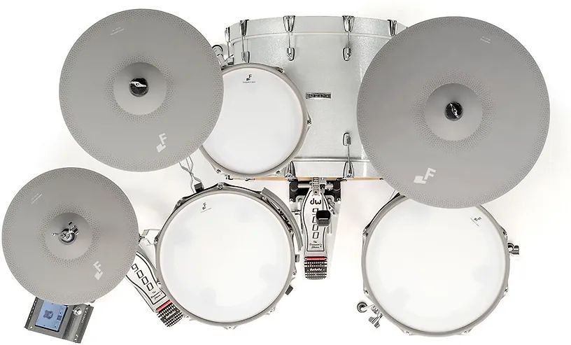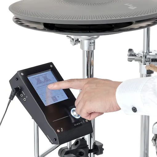 Сенсорный модуль Efnote обеспечивает высококачественное звучание ударных инструментов независимо от жанра, а барабаны с 6-слойной березовой рамой и двойными сетчатыми пластиками делают игру естественной. На малом барабане можно играть, удерживая его на боковой палочке, не меняя настроек модуля, а трехзонные тарелки свободно вращаются и имеют диапазон игры в 360 градусов. В комплекте Efnote 7 рукава реализованы с собственной педалью, в которой реализована технология TruMotion от Efnote: педаль имеет короткий держатель рукава и точный оптический датчик и регулировку натяжения пружины, поэтому ощущения от игры значительно лучше по сравнению с традиционными отдельными педали-рукава.