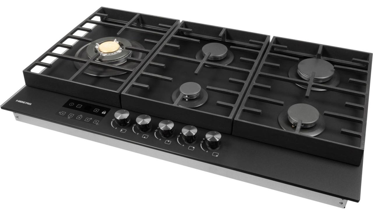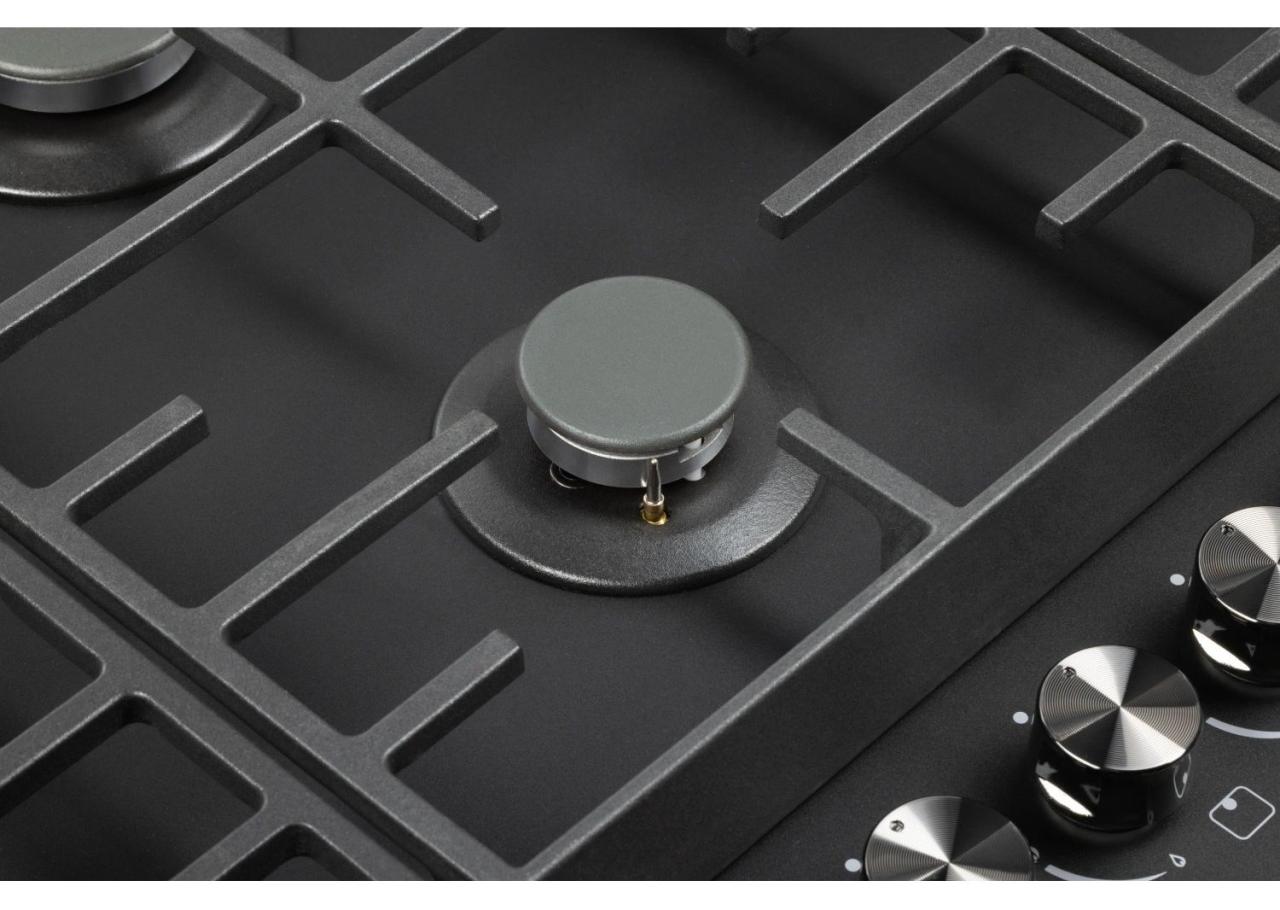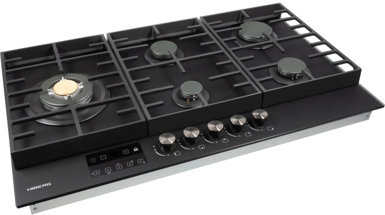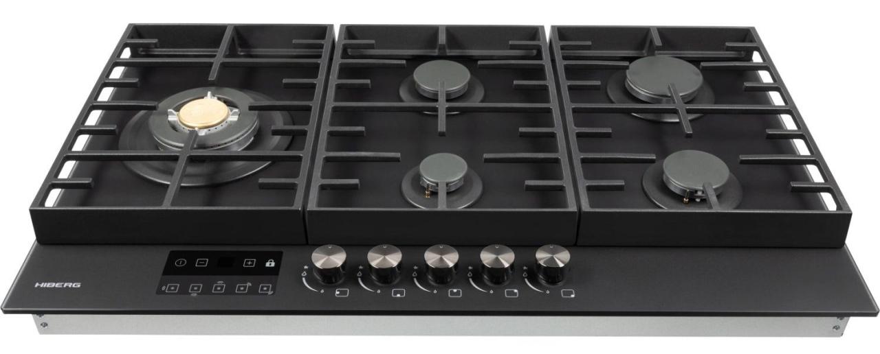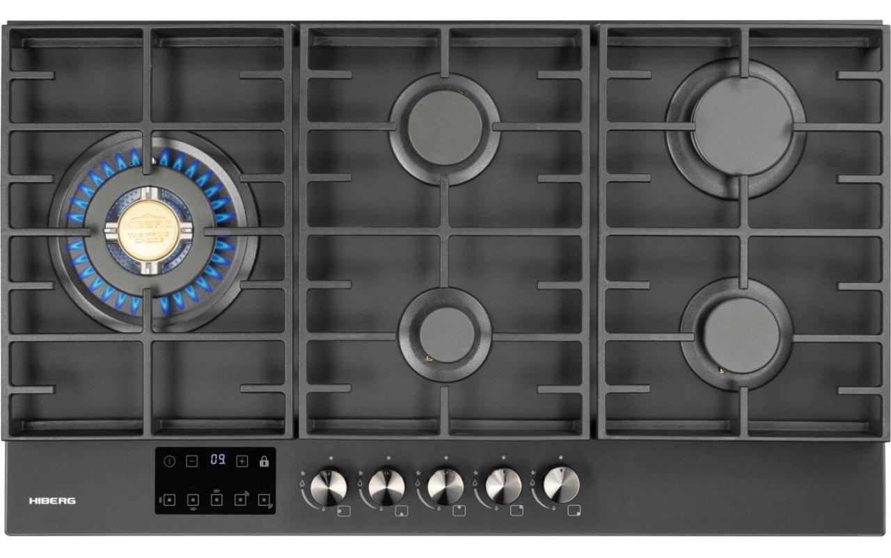 Конфорки различаются по диаметру и мощности: наиболее производительная WOK конфорка 3,4 кВт с тройным рядом пламени обеспечивает усиленный жар для быстрого и равномерного прогрева дна и стенок посуды. Автоподжиг упрощает запуск одной рукой, а усиленные чугунные решетки надежно удерживают тяжелую посуду. В комплект входит сменный набор металлических ручек. Гарантия на варочную панель HIBERG — 2 года.