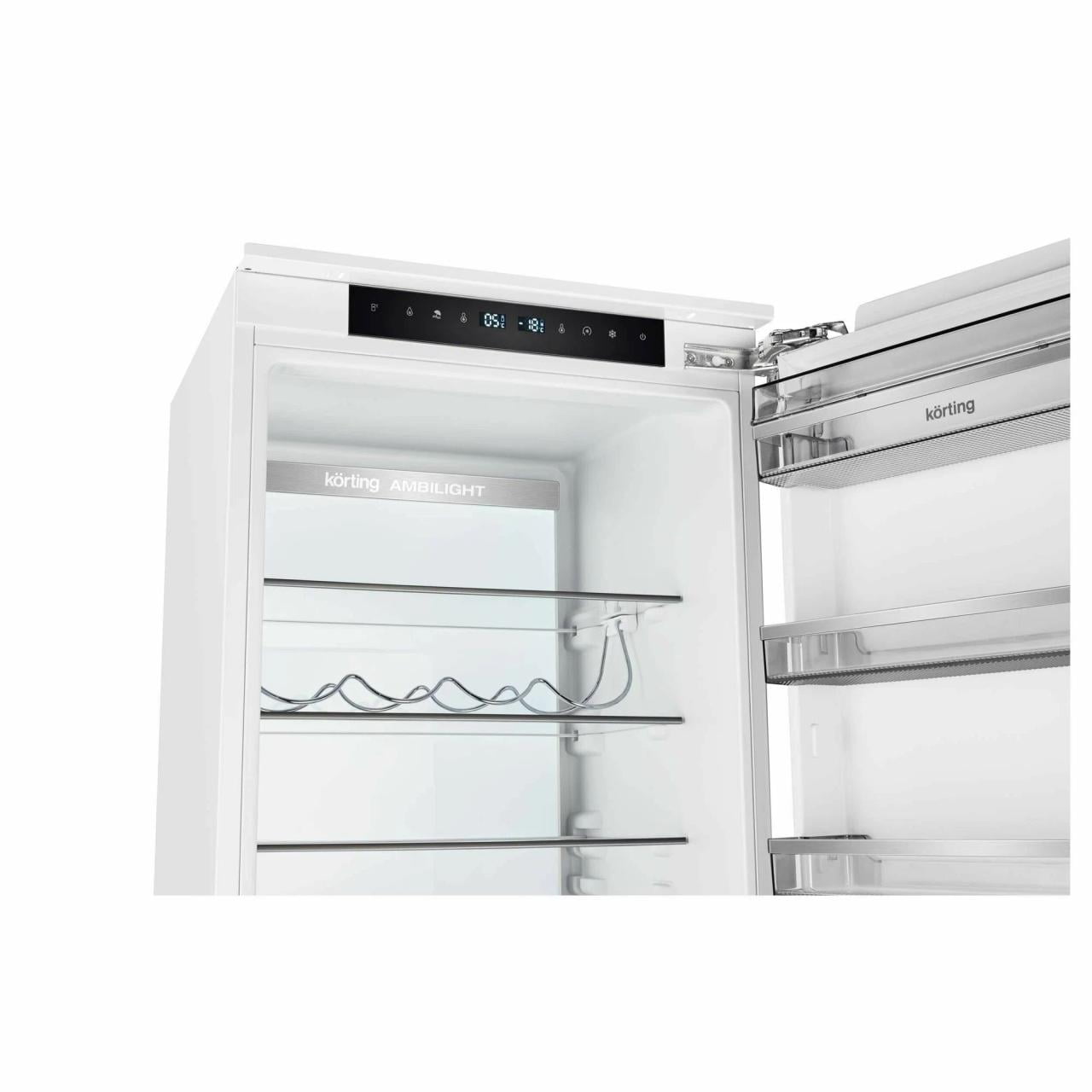 Электронное управление обеспечивает самую точную регулировку и контроль температуры в холодильной и в морозильной камере.