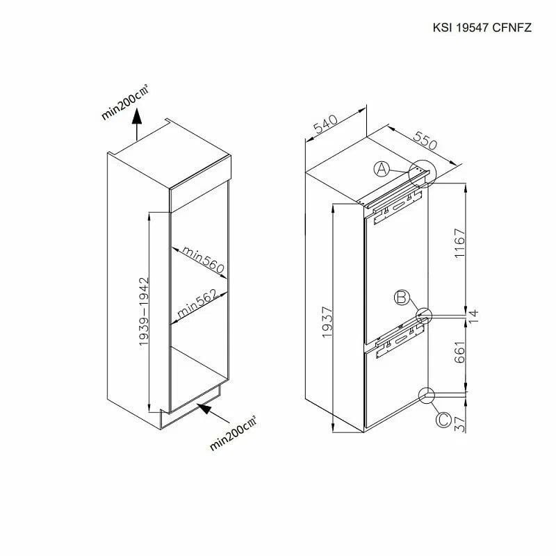 Размеры встраивания (ВхШхГ) (мм): 1939-1942х562х560