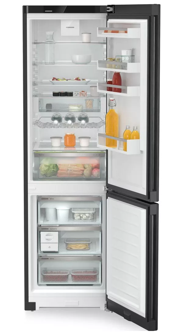 За свежесть продуктов отвечают фирменные технологии Liebherr. EasyFresh поддерживает повышенную влажность для неупакованных овощей и фруктов, продлевая их срок годности. В холодильной камере равномерное распределение холода обеспечивает PowerCooling с тихим вентилятором, а SuperCool быстро охлаждает свежие покупки и затем отключается автоматически.