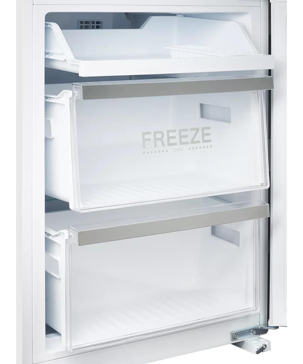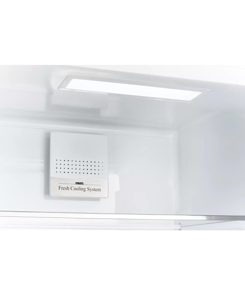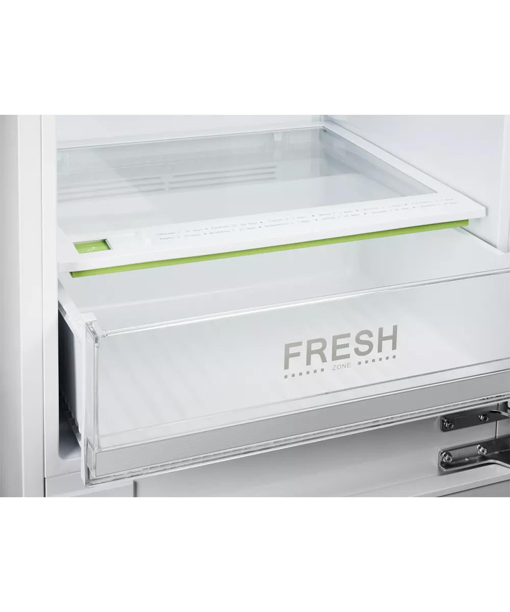 Модель выгодно отличается наличием зоны свежести Fresh для овощей и фруктов. В этом отсеке температура ниже, а влажность выше. Это оптимальный вариант для длительного хранения растительной пищи.