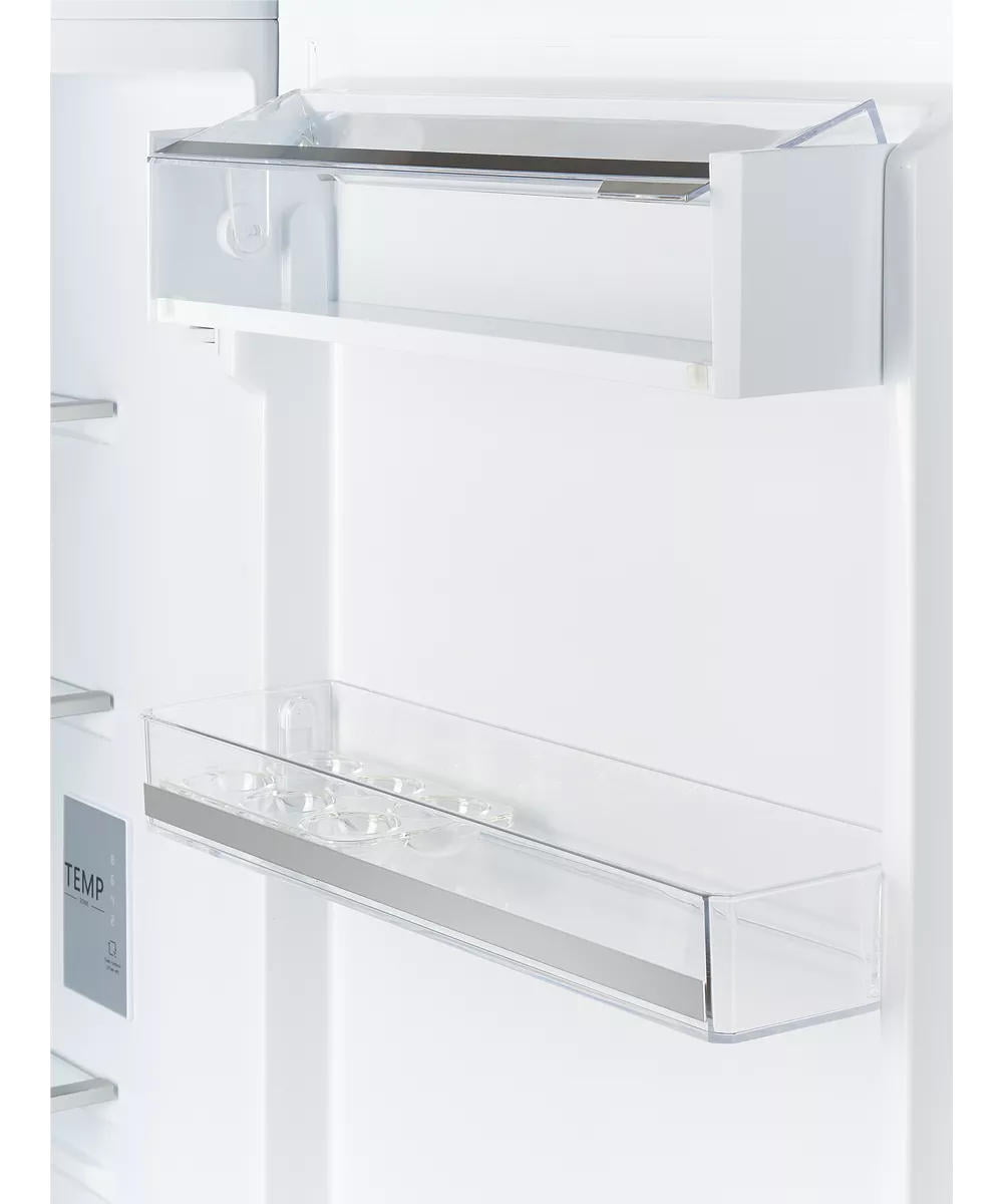 Двухкамерный холодильник Kuppersberg NBM 17863 относится к типу встраиваемых. Поэтому его фасад выполнен в классическом белом цвете, поскольку подразумевается, что он будет закрыт декоративной панелью кухонного гарнитура. Благодаря такому решению шум от работы будет значительно меньше. Кроме того, сам прибор функционирует при 41 дБ, что сродни негромкому разговору. Высота устройства достаточно большая - 179 см, поэтому общий полезный объём составляет 241 л.