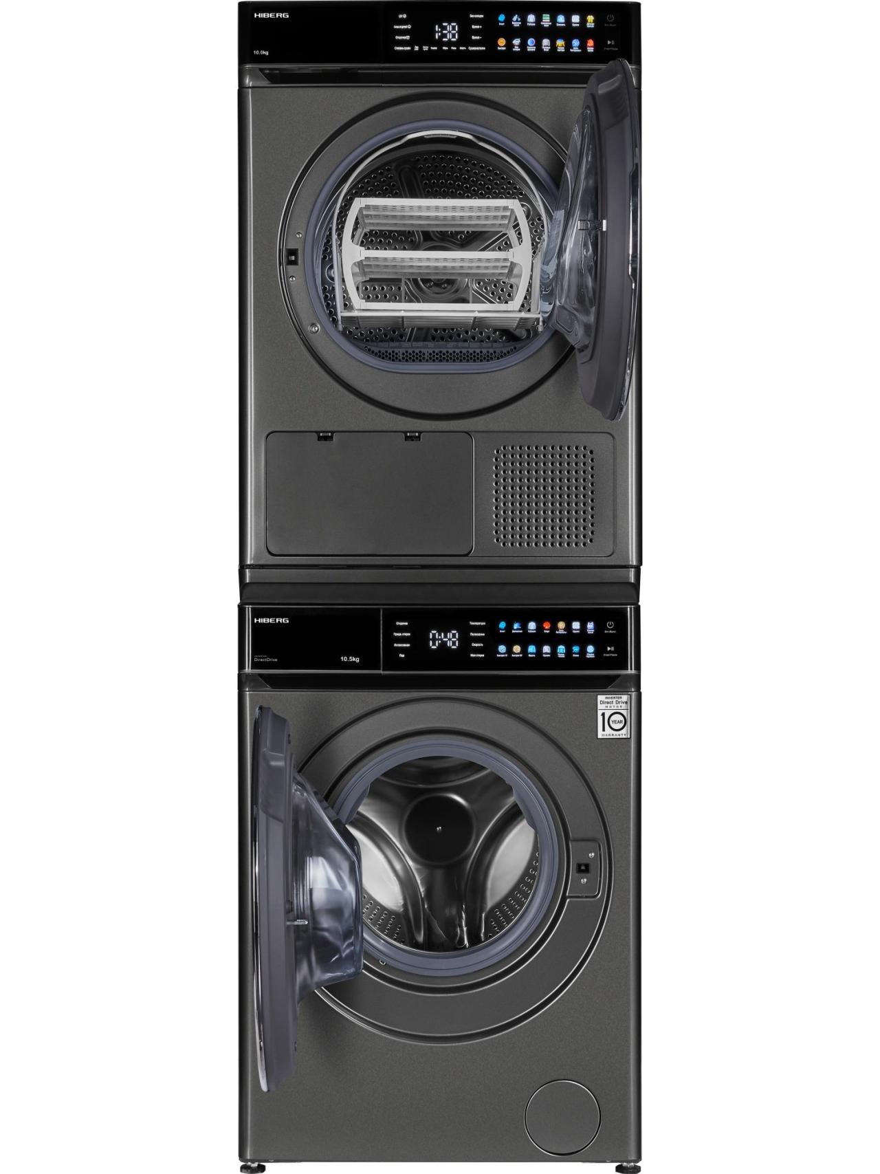 Комбинация HIBERG сушильная машина HDQ11 10 Sd + стиральная машина i-DDQ11 1014 Sd + соединительный элемент RU
