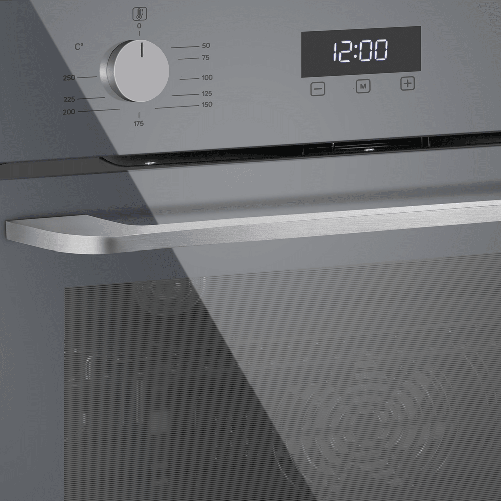 Шкаф духовой электрический MAUNFELD EOEM7610DGR из серии MASTER создан для тех, кто ценит продуманный функционал и элегантный внешний вид. Объем 76 л при стандартной ширине 60 см позволяет комфортно готовить на несколько персон, а 6 уровней направляющих помогают гибко распределять блюда по высоте. Объем 76 л, комбинированное управление с утапливаемыми ручками Push Pull, три стекла двери и «холодный фронт», класс энергоэффективности A+ — ключевые аргументы в пользу этой модели.