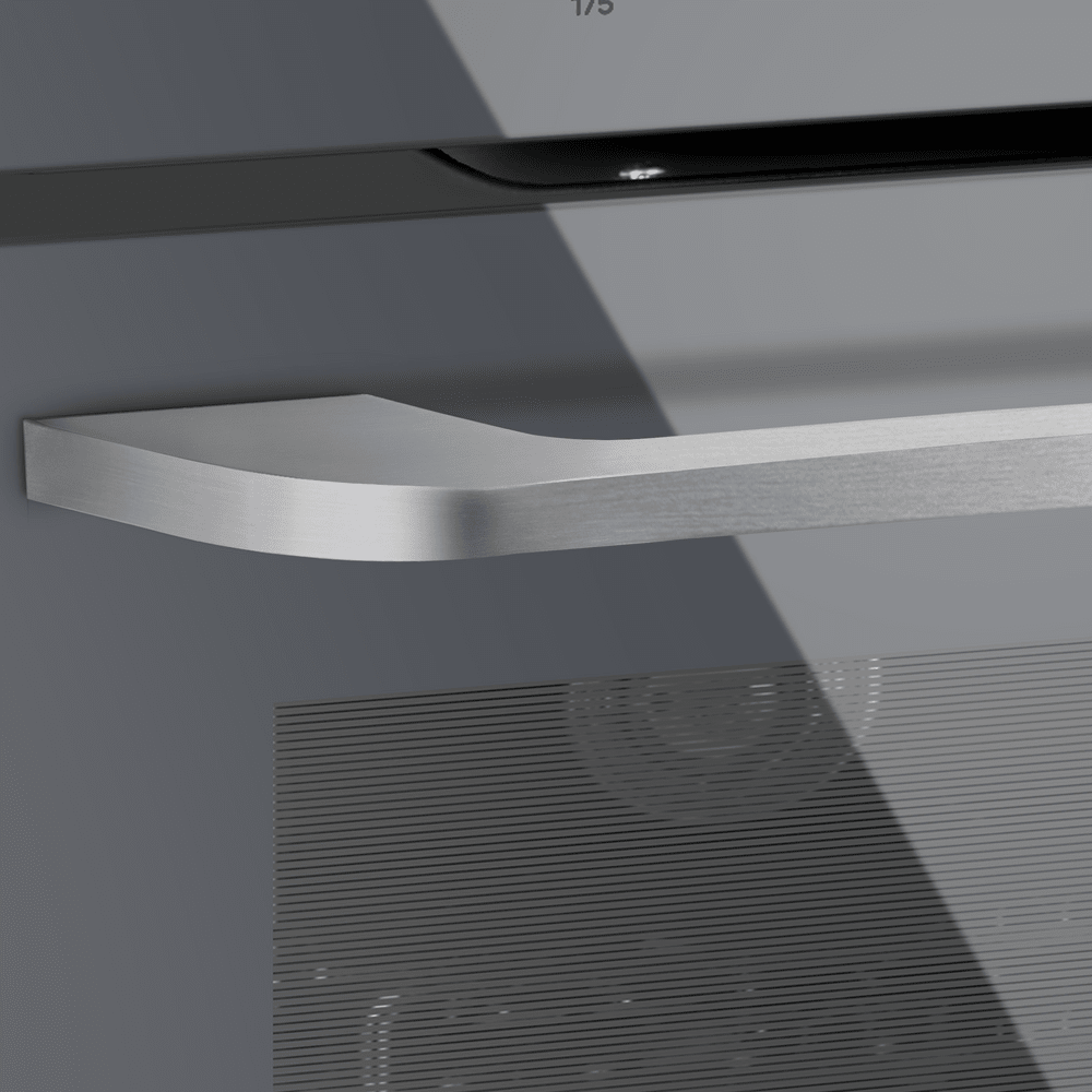 Тангенциальное охлаждение снижает нагрев мебели вокруг, а трехслойная дверь формирует безопасно прохладный внешний фронт — удобно, когда на кухне дети. Тонированное внутреннее стекло скрывает камеру при выключенном свете и, наоборот, открывает хороший обзор процесса готовки при включенной подсветке.