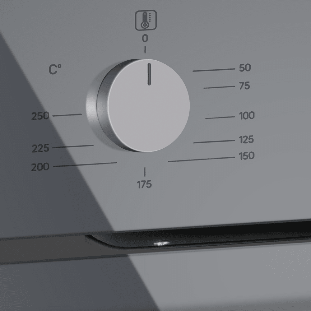Комбинированное управление — это понятный сенсорный дисплей и надежные цельнометаллические ручки, которые одним нажатием прячутся заподлицо с панелью. Можно быстро выбрать режим, выставить температуру от 50° до 250°C и настроить таймер.