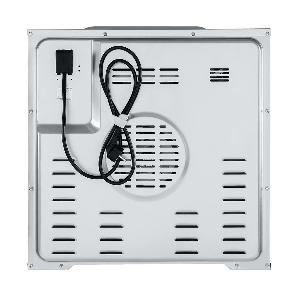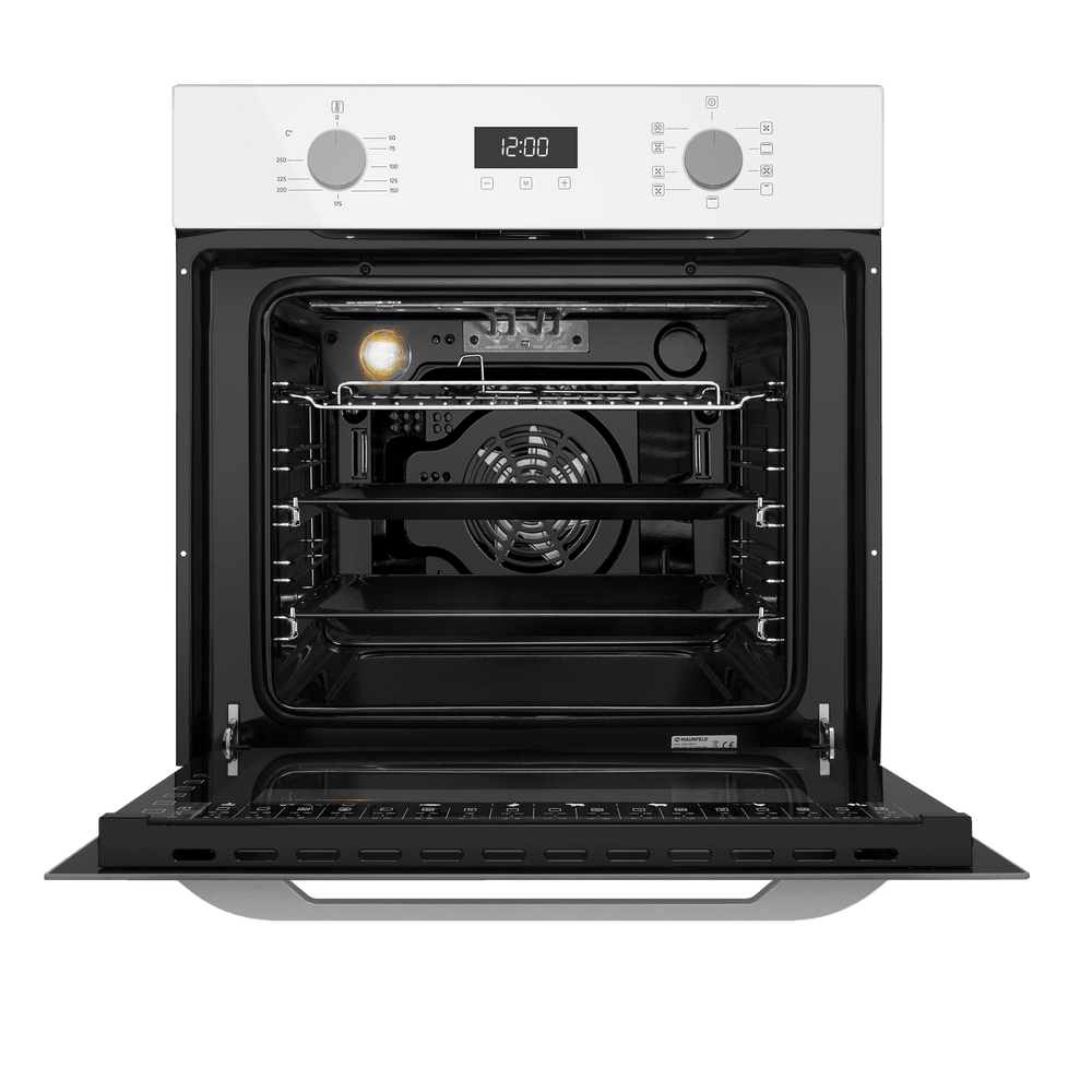 Безопасность на кухне поддерживает тангенциальное охлаждение, снижающее нагрев мебели вокруг, и «холодный фронт» с 3 стеклами двери, благодаря которому внешнее стекло практически не греется — удобно и спокойно, даже когда рядом дети. Черное жаропрочное стекло фронтальной панели окрашено по всему объему, подчеркивая премиальный характер модели и делая MAUNFELD EOEM7610W достойным центром современной кухни.