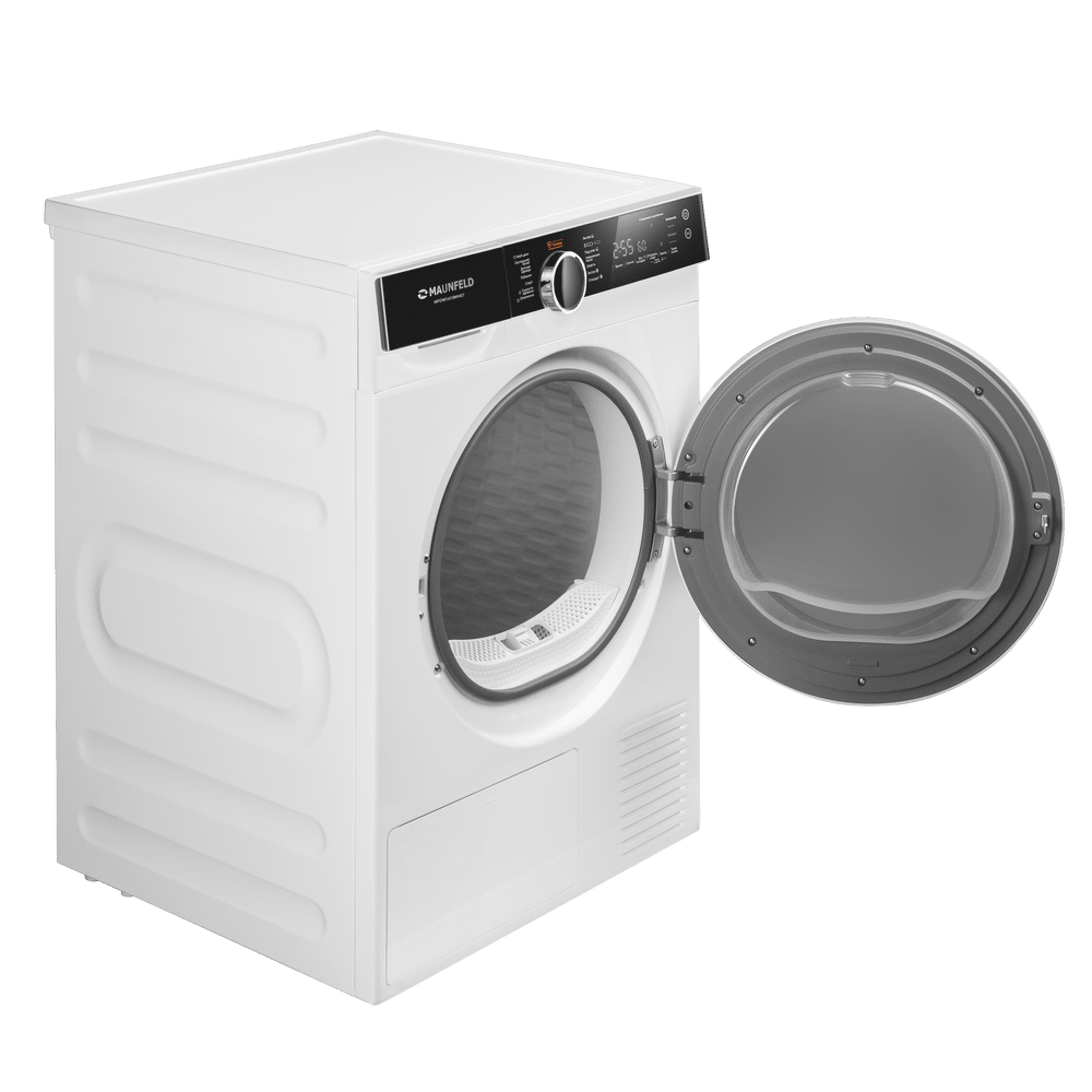 Сушильная машина с инвертором и тепловым насосом MAUNFELD MFDM1410WH07 создана для бережной и эффективной сушки большого объёма белья. Технология Heat Pump направляет тёплый сухой воздух в камеру, мягко удаляя влагу из тканей и возвращая его через испаритель без необходимости дополнительного вентиляционного канала. Съёмный резервуар для конденсата позволяет разместить технику там, где вам удобно, без привязки к стационарному сливу.