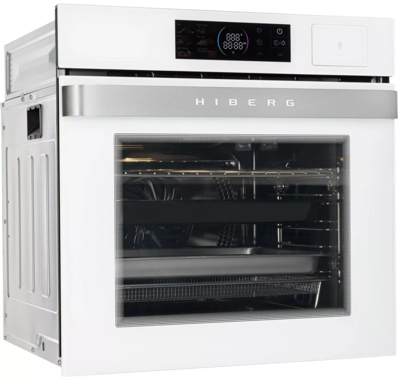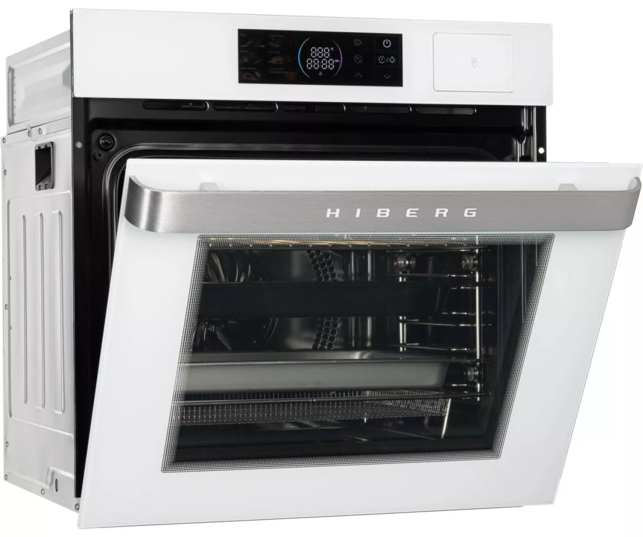 Встраиваемый электрический духовой шкаф HIBERG S-VM 6415 W SMART создан для тех, кто ценит удобство и стиль на кухне. Белый стеклянный фасад и цветной LED-дисплей с сенсорным управлением помогают быстро задать нужные параметры и контролировать процесс приготовления, не перегружая пространство визуально.