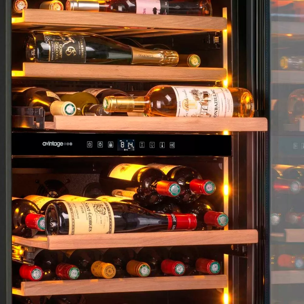 Позволяют задать нужную температуру для хранения вина разных видов. Разделение общего пространства на две зоны обеспечивает сохранность вкусовых качеств напитков. Общая рабочая температура — от 5°С до 20°С.
