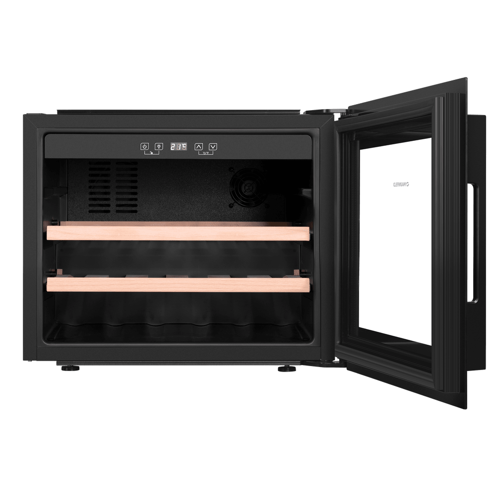 Широкий температурный диапазон 5–20 °C позволяет хранить красные, белые и игристые вина, а также готовить их к подаче. Встроенный вентилятор обеспечивает равномерное распределение холода по всем полкам, сохраняя стабильные условия хранения.