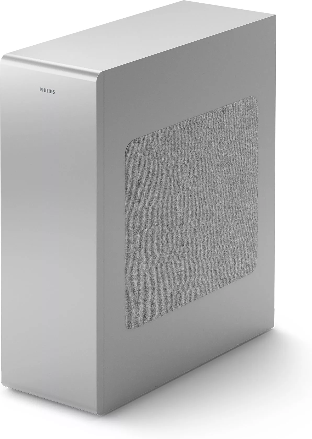 Philips TAB8507 включает звуковую панель и сабвуфер с беспроводным подключением, что гарантирует работу в кинотеатре по-настоящему. Отдельные средние динамики улучшают звучание, а система Dolby Atmos обеспечивает глубокое и захватывающее объемное звучание.